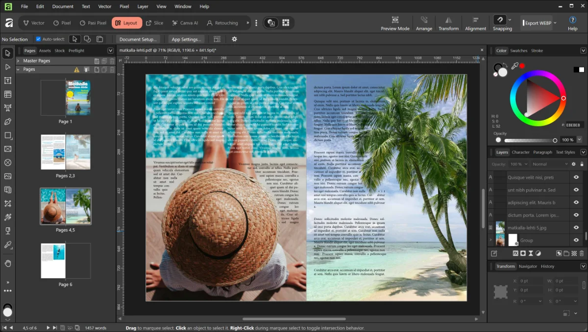 Affinity Layout -studion avulla voit suunnitella taittotöitä, kuten mainoksia, markkinointiaineistoja, esitteitä, lehtiä ja kirjoja monipuolisesti, ammattimaisesti ja ilmaiseksi!